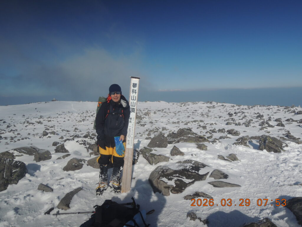里では桜が満開になっているというのに、編笠山の頂上は真冬に逆戻り・・